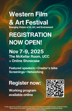 Registration is now open for the Western Film & Art Festival (Nov 7–9, 2025 at McKellar Room, Western University).