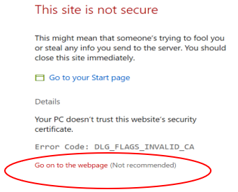 - Click on Go on to the webpage (Not recommended)