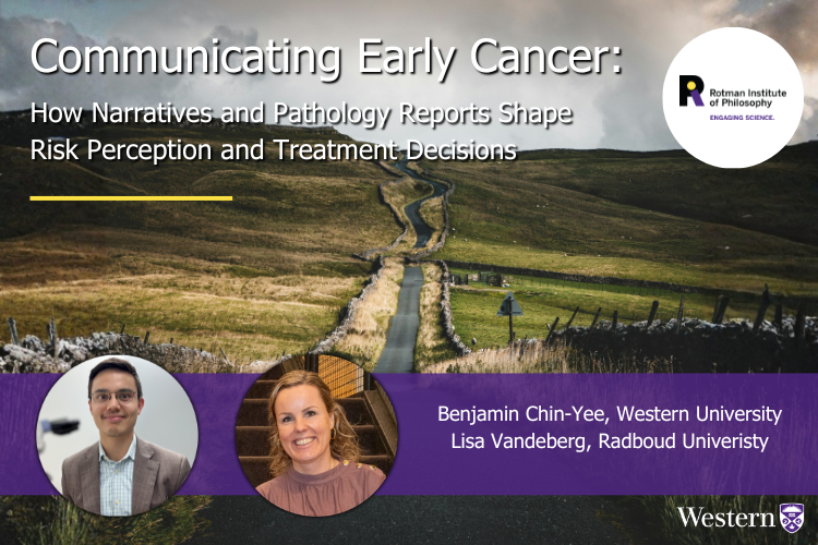 Join the Rotman Institute of Philosophy as we welcome Benjamin Chin-Yee (Western University) and Lisa Vandeberg (Radboud University) for an engaging seminar: "Communicating Early Cancer: How Narratives and Pathology Reports Shape Risk Perception and Treatment Decisions"PLEASE REGISTER HERE - virtual option available